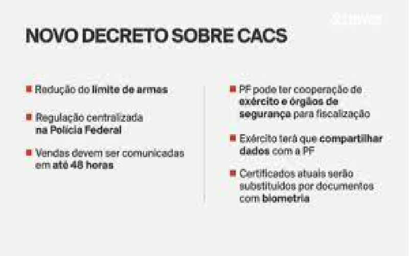 O texto do novo decreto também retira do Exército a competência principal para controlar o fluxo de armas de fogo no país. Essas atribuições serão transferidas para a Polícia Federal, que ficará responsável pelo:
