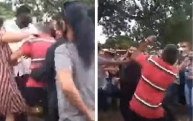 Seis pessoas da mesma família foram levadas para a delegacia após uma briga generalizada durante o enterro de um homem no cemitério de Santo Antônio do Leverger, a 33 km de Cuiabá, na manhã do último domingo (14). Um vídeo gravado por uma testemunha mostra o momento da confusão.