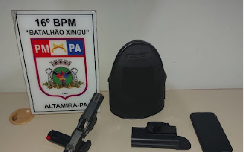 16º BPM PRENDE HOMEM PELO CRIME DE AMEAÇA E PORTE ILEGAL DE ARMA DE FOGO EM ALTAMIRA