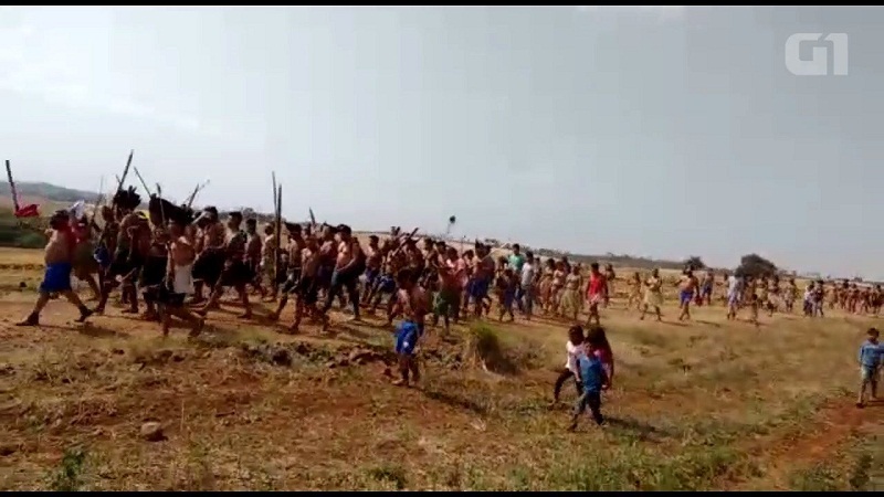 A invasão aconteceu por volta das 11h. Os índios estavam com arcos e flechas. Eles cantavam músicas típicas.