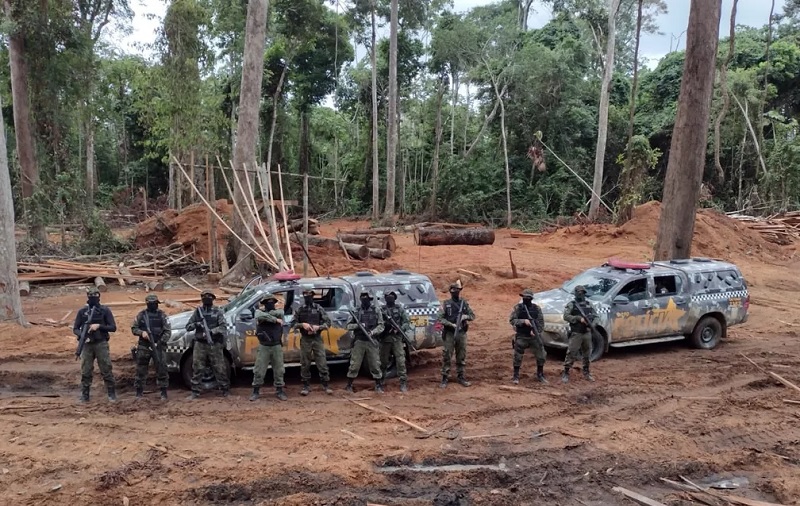 Equipe da 1ª Cipamb/CPA em operação na região do Chapadão, em Santarém — Foto: 1ª Cipamb/Divulgação