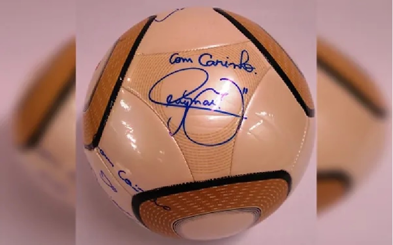 Bola de futebol assinada por jogadores do Santos, entre eles Neymar, foi encontrada em Sorocaba após furto durante atos bolsonaristas em Brasília — Foto: Câmara dos Deputados/Divulgação