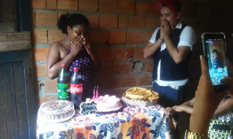 Estudantes e voluntários de ONG organizaram a festinha na casa da adolescente no bairro do Aurá, em Ananindeua. Teve bolo, refrigerante e valsa de debutante.