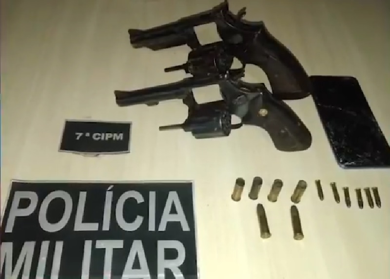 Com a dupla, segundo o oficial, foram apreendidas duas armas de fogo — sendo dois revólveres um calibre 38 com quatro munições deflagradas e duas intactas, outro revolver calibre 22 com seis munições intactas.