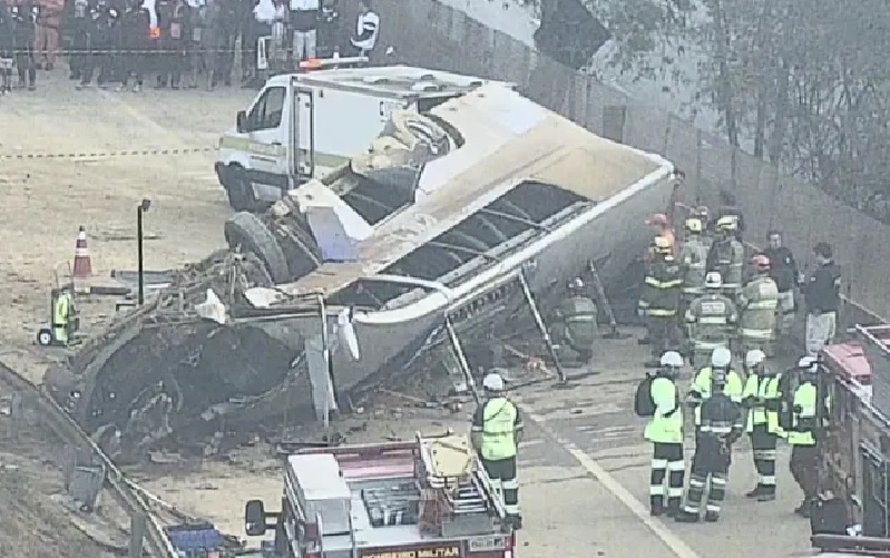 Das 46 pessoas no veículo, sete morreram no local. Outras dez ficaram presas às ferragens.