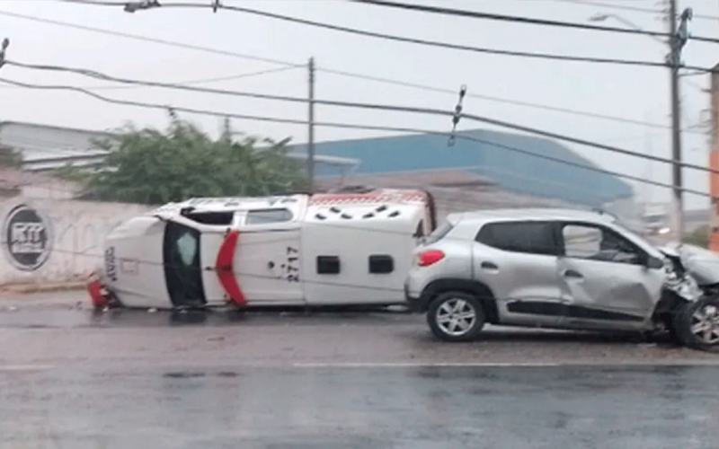 Um acidente logo nas primeiras horas desta quinta-feira, 21, deixou o trânsito congestionado e possivelmente duas pessoas feridas após a colisão. O fato ocorreu na avenida João Paulo II, envolvendo um carro de passeio e uma viatura da Polícia Militar. Ambos colidiram e dois policiais teriam se machucado. Vários postes de iluminação foram ao chão após a colisão.