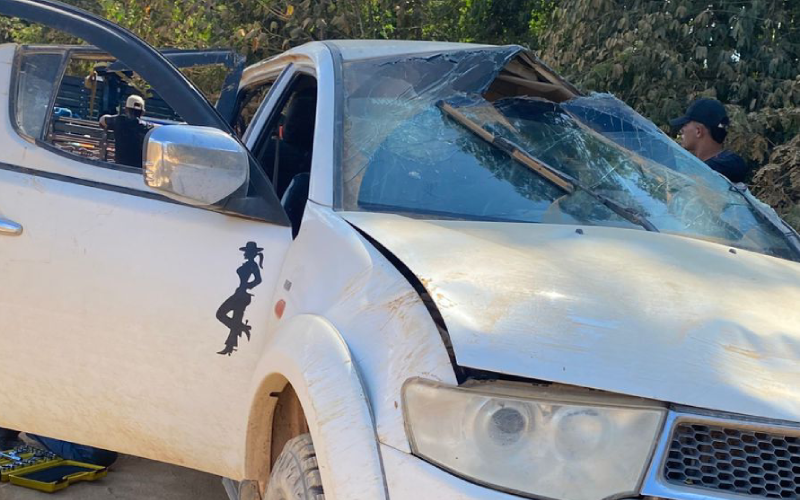 Foto: Reprodução | Um grave acidente foi registrado na tarde desta terça-feira, 8 de julho de 2025, na vicinal Marajoara, em Novo Progresso. Uma camionete capotou, deixando quatro pessoas feridas.