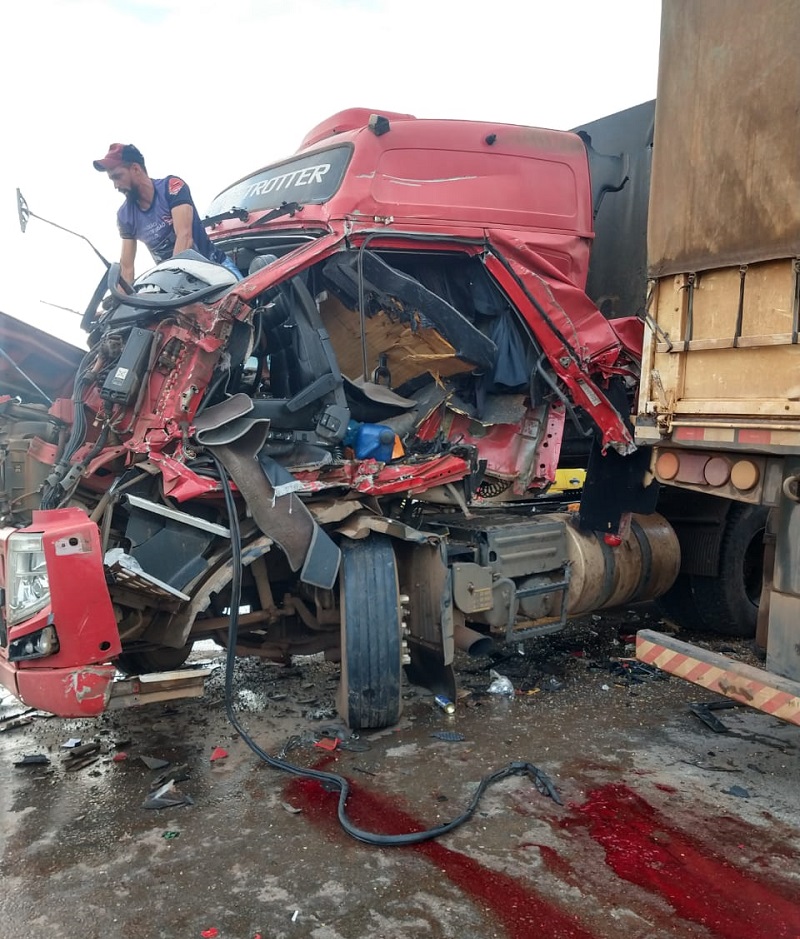 Em seguida, o Sandero rodou e colidiu em outra carreta e ainda acertou uma picape, que estavam no mesmo sentido, Lucas/Sorriso.