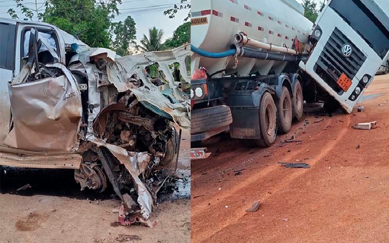 (Foto: Redes Sociais) – Na tarde de quinta-feira (1º), uma caminhonete e um caminhão de combustível se envolveram em um acidente, na BR-163, as proximidades da entrada do município de Belterra.