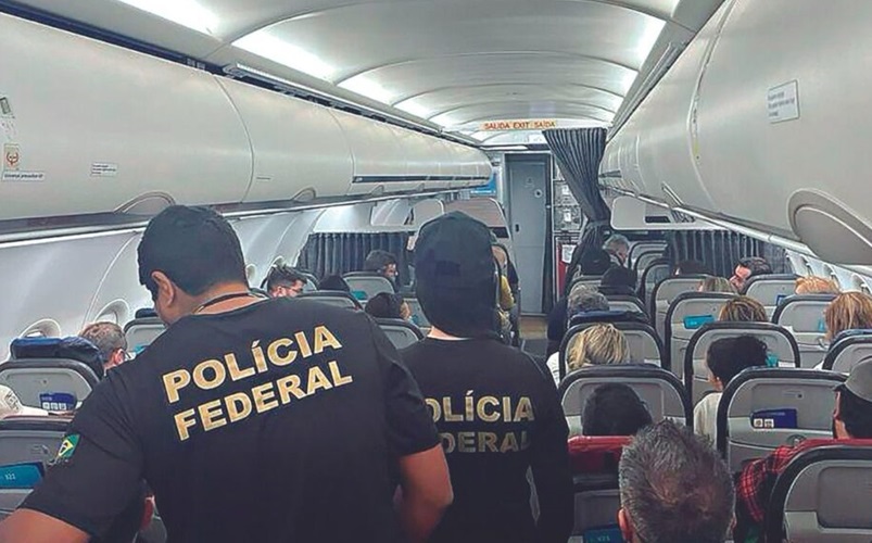 As mulheres foram abordadas pela PF ainda dentro da aeronave – (Foto:Ascom/PF)