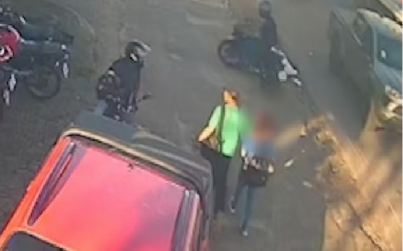 As imagens mostram o homem andando com a adolescente até a frente de uma loja, tentando disfarçar a situação ao abraçá-la. Mesmo diante da violência e das ameaças, a jovem conseguiu manter a calma. Quando avistou dois motociclistas parados no semáforo próximo, sinalizou discretamente com os lábios, pedindo ajuda.