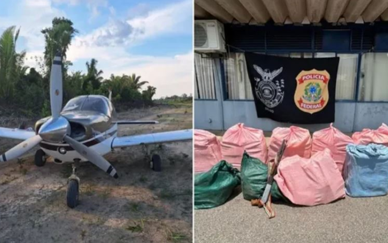 De acordo com a PF, o avião foi localizado em uma pista clandestina, em meio à mata fechada. No local, também foi apreendido um veículo utilizado como ponto de apoio para o transporte do entorpecente.