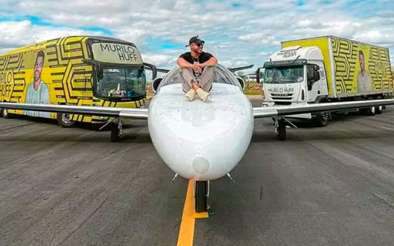 Na manhã desta segunda-feira (29) um avião de pequeno porte, de uma das empresas de Murillo Huff, caiu dentro de uma vala no Aeroporto Santa Genoveva, em Goiânia. Segundo a assessoria do cantor, apesar do incidente não houve feridos nem danos à aeronave.