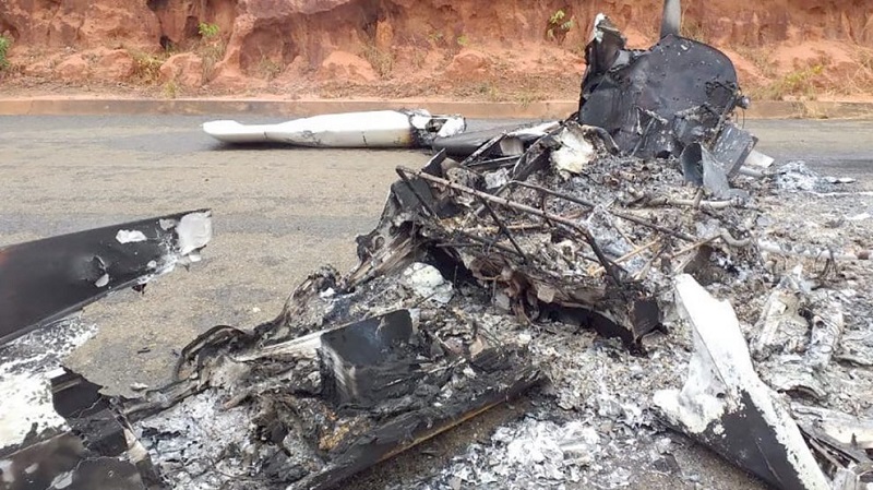 Aeronave é encontrada em rodovia do MT destruída pelo fogo