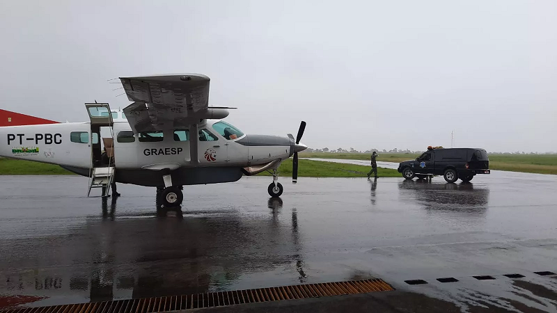 A aeronave é do Grupamento Aéreo de Segurança Pública (Graesp), vinculado à Secretaria de Estado de Segurança Pública e Defesa Social (Segup) do Pará, que foi encaminhado ao Amapá nesta segunda-feira.
