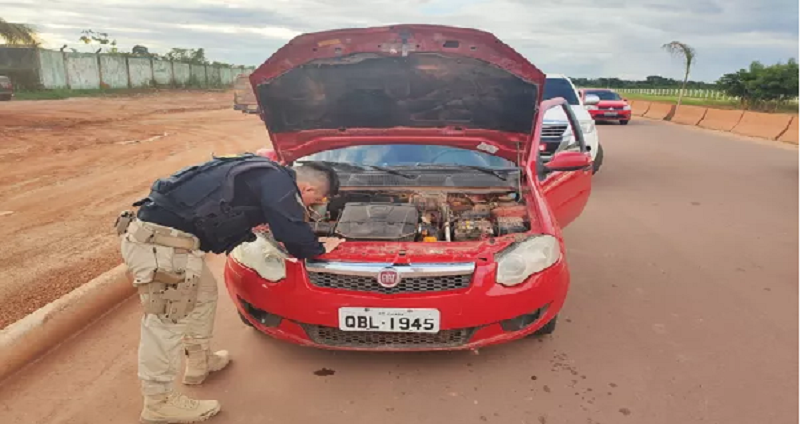 Segundo a PRF, após a consulta aos sistemas verificou-se a divergência quanto ao município de registro do veículo. Durante os procedimentos, os agentes notaram que alguns elementos identificadores haviam sido suprimidos. Foi realizada uma vistoria minuciosa, e o carro estava com registro de ocorrência de furto, registrada em setembro de 2017.
