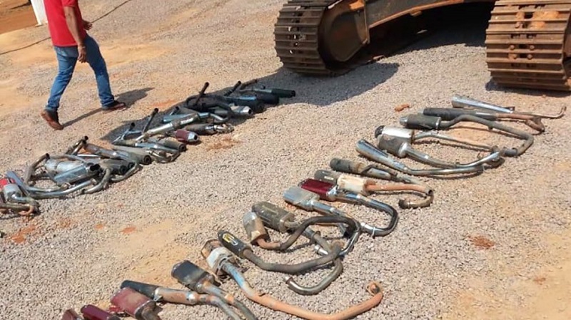 “Os escapes estavam totalmente fora do código de trânsito, alguns eram construídos até em fundo de quintal. Eles estavam apreendidos desde março e as motos, que estavam irregulares, foram pegas em fiscalização. A prensagem será doada para a reciclagem”, disse o agente Edson Matos, ao Portal Só Notícias de Sinop MT. Os escapes foram destruídos por uma retroescavadeira.