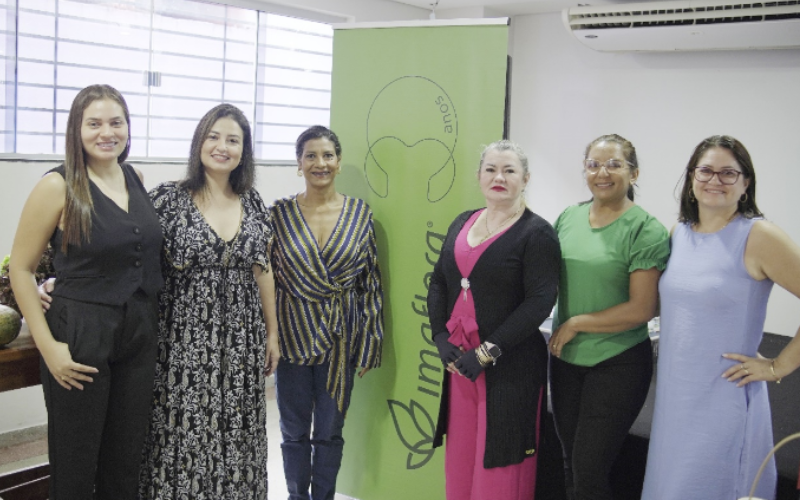 Da esquerda para a direita: Caroline Alves Neves (nutricionista DEMAE/SEMED); Jaqueline de Oliveira Silva (Secretária de Educação); Celma Oliveira (Imaflora/Florestas de Valor); Cacilda Rosa da Silva (Vice- Prefeita); Eliane Coelho dos Santos Silva (Diretora de Ensino/SEMED);e Maria de Fátima Moura (Diretora de Ensino/SEMED).