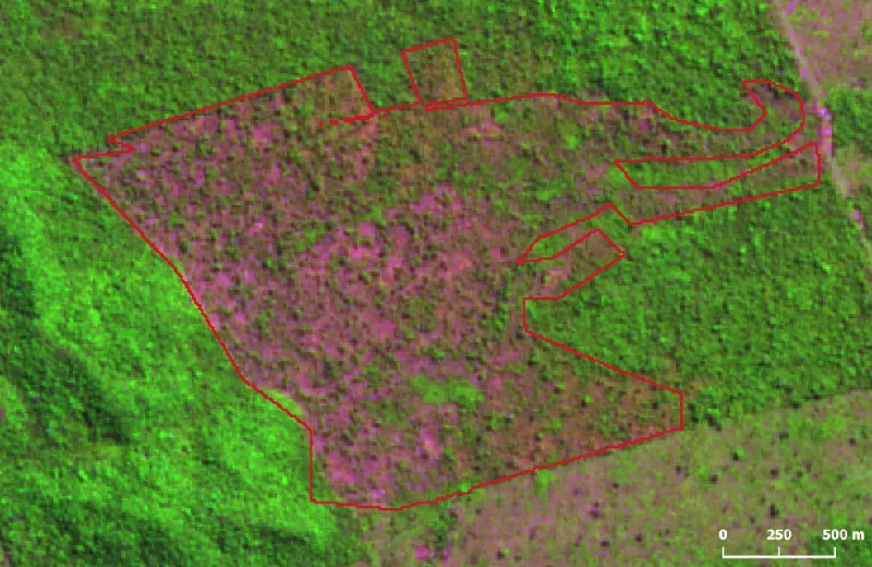 Imagem mostra área com desmatamento de 3,5 km² detectado em julho em Altamira, sudoeste do Pará — Foto: Divulgação/Imazon