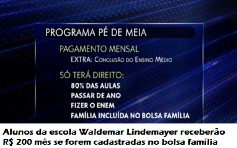 (Foto: Reprodução/Autor Édio Rosa)- O Programa concede incentivos financeiros para estudantes de baixa renda matriculados no Ensino Médio no ano de 2024, com frequência regular e aprovação no ano letivo. Diretor da Escola de ensino Médio Waldemar lindemayer vem explicando nessa entrevista no Jornal do Meio Dia na Rádio Cultura FM, todos os detalhes sobre o Programa Pé de Meia, que passa a oferecer duzentos reais mensais aos alunos beneficiários do Bolsa Família.