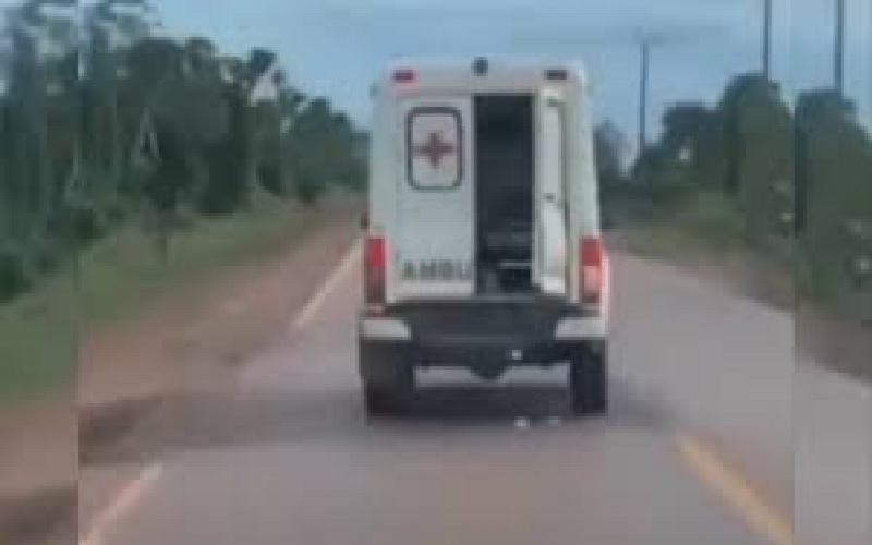 O flagrante foi no distrito de Miritituba na quarta-feira (17). Nas imagens é possível ver quando a ambulância faz ultrapassagens, mesmo com a estrada apresentado buracos. A suspeita é que o carro tenha atingido 140 km/h.