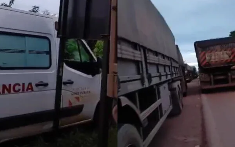 Ambulância enfrenta dificuldades na BR-163 devido a bloqueios