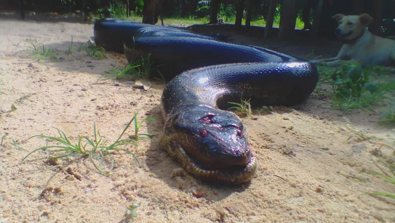 ‘Anaconda’ é morta após atacar cachorro que brincava com criança, no Pará