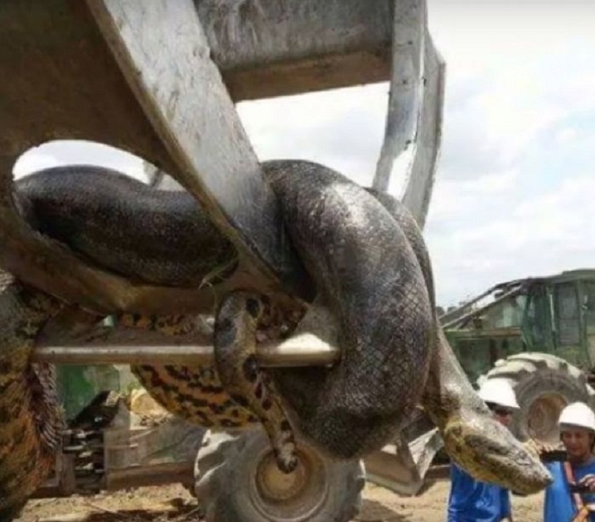 Uma anaconda de cerca de dez metros foi encontrada por trabalhadores da construção civil, numa mina em Altamira, no Pará. O animal gigante pesa cerca de 400 quilos e apareceu quando os homens realizaram uma explosão no local.