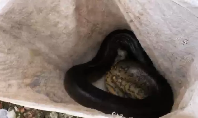 Assustadas, as pessoas tentaram imobilizar o exemplar da espécie sucuri, que media cerca de três metros.