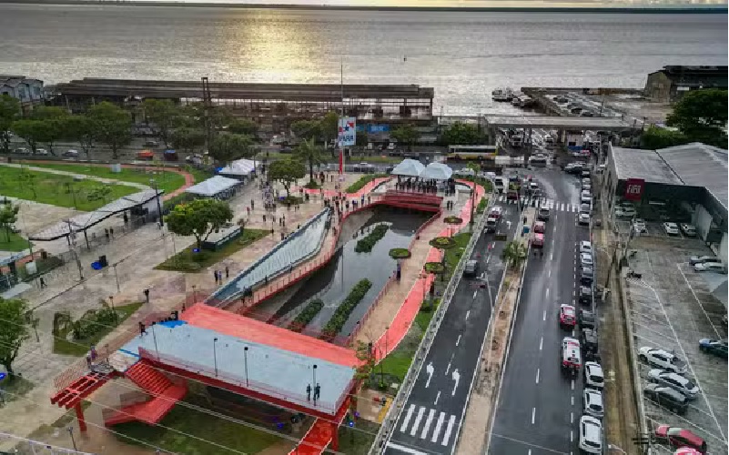 COP 30, em Belém: Construção do Parque Linear da Doca. — Foto: Raphael Luz / Ag. Pará