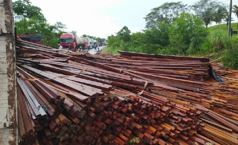 Após acidente, madeiras nobres são apreendidas por ilegalidade, no nordeste do Pará