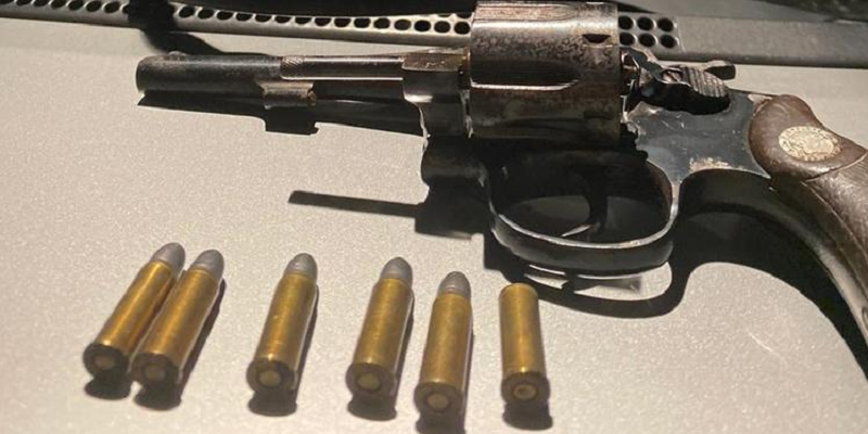Arma apreendida com Edson e cinco munições intactas. Uma estava deflagrada e teria sido usada contra os policiais. (Foto:Polícia Militar / Divulgação)