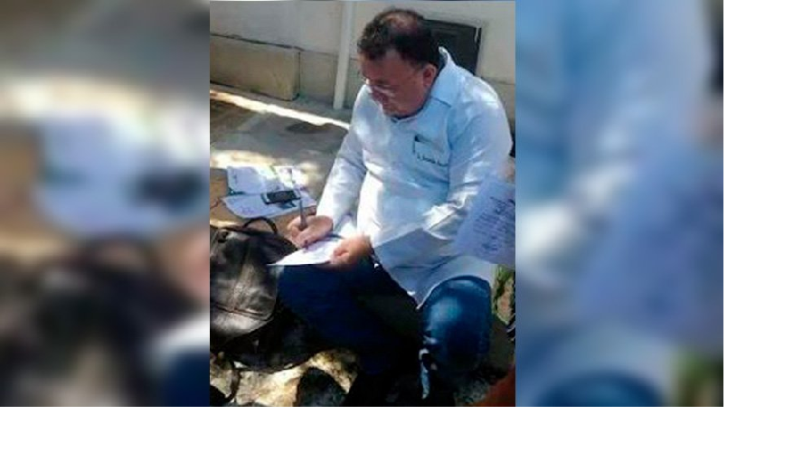 O médico Bernardo Amorim atendeu os pacientes debaixo de uma árvore nesta semana. O atendimento ocorreu em frente ao posto que estava fechado, e só iria abrir às 14h, mas como o médico chegou antes e viu que haviam muitas pessoas esperando em frente ao local, resolveu dar início ao atendimento lá mesmo, na calçada, embaixo de uma árvore.