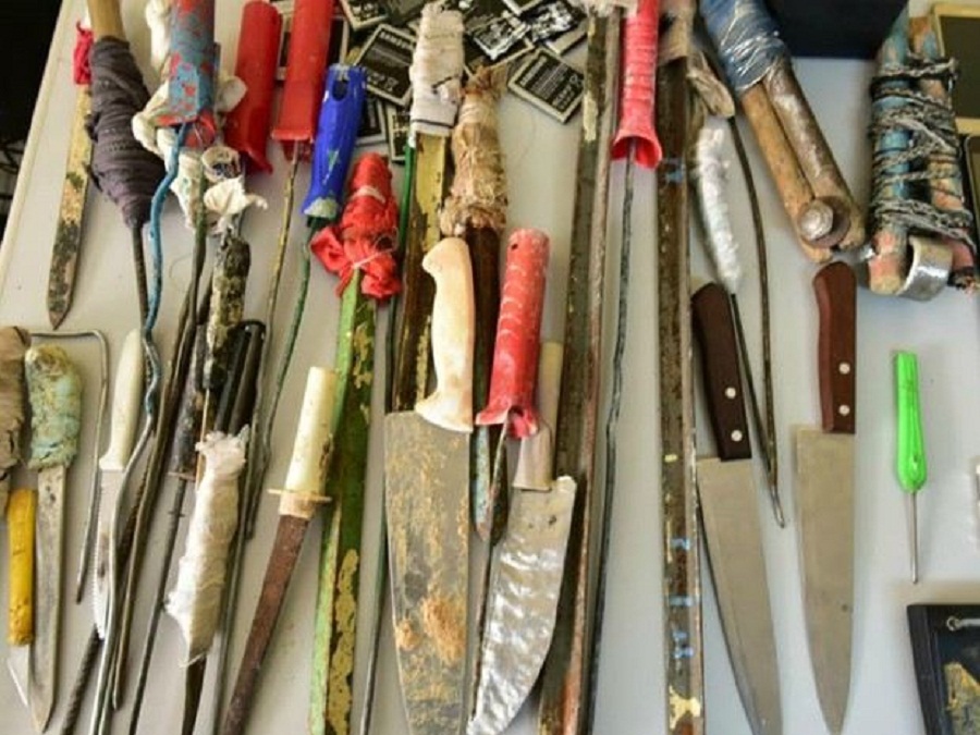 Diversas facas foram apreendidas dentro de cadeia onde quatro presos morreram no dia 2 (Foto: Seap/Divulgação) Diversas facas foram apreendidas dentro de cadeia onde quatro presos morreram no dia 2 (Foto: Seap/Divulgação)