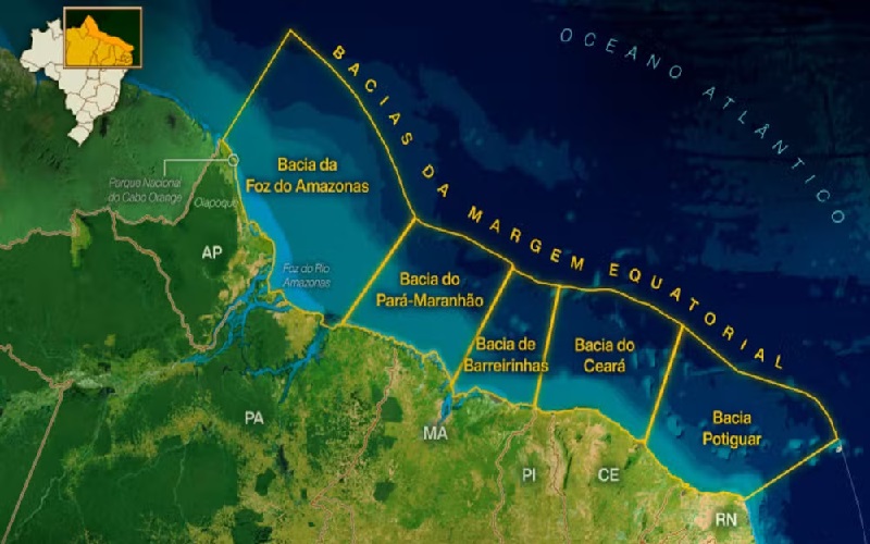 Mapa com os Estados das Bacias da Margem Equatorial — Foto: Divulgação