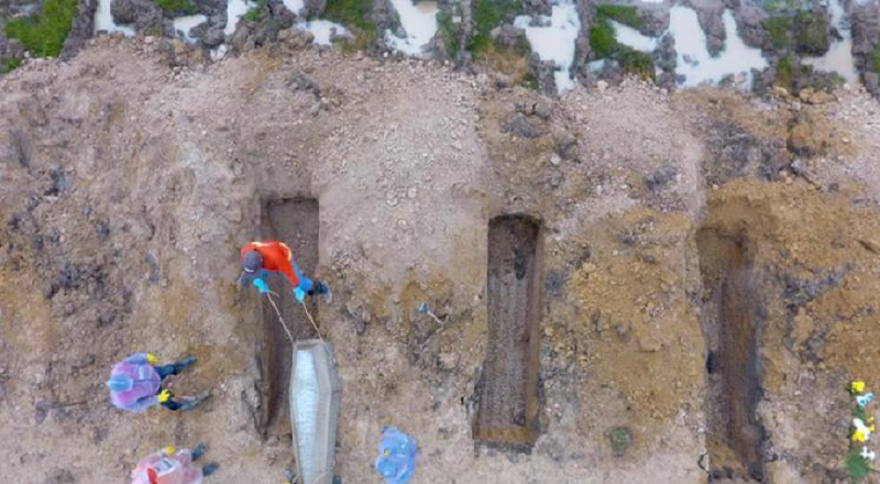 Com a superlotação da rede pública de Saúde, a falta de leitos de UTI e o aumento no número de mortos, a demanda de sepultamentos também subiu. Segundo o Sindicato das empresas do segmento funerário do Estado do Pará (Sindef), no principal cemitério público de Belém, no bairro do Tapanã, são realizados diariamente oito sepultamentos, quatro no período da manhã e outros quatro à tarde, até as 16 horas. Após esse horário, o atendimento é retomado somente a partir das 9h do dia seguinte.