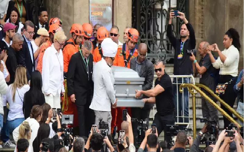 Após a cerimônia no Theatro Municipal do Rio de Janeiro, que reuniu familiares, amigos e fãs nesta sexta-feira (25), se despediram da cantora Preta Gil. Ao fim do velório, o músico Carlinhos Brown, o ator Otavio Muller e o filho da cantora, Francisco Gil, levaram o caixão até o carro do Corpo de Bombeiros para o início do cortejo.