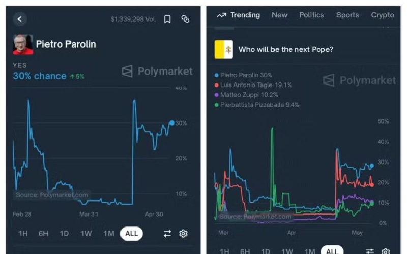 Desde que o papa Francisco morreu, a plataforma de apostas norte-americana Polymarket abriu uma sessão para apostadores sobre quem será o próximo papa. Nesta quarta-feira (7), quando começa o conclave, Pietro Parolin é o nome mais cotado.