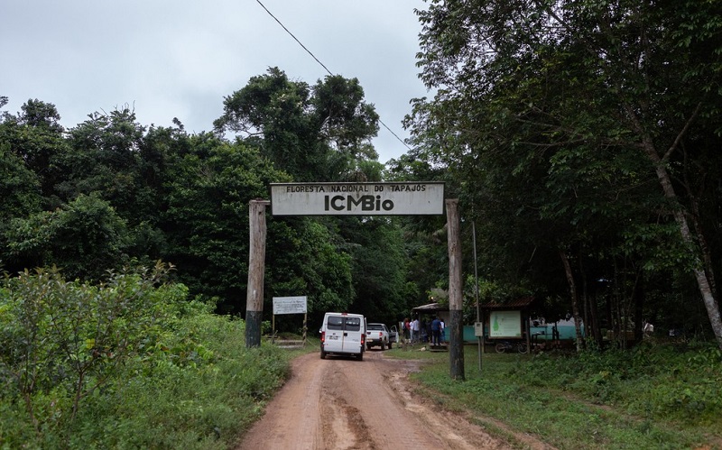 Uma das entradas da Floresta Nacional do Tapajós; visitantes precisam pedir autorização ao ICMBio