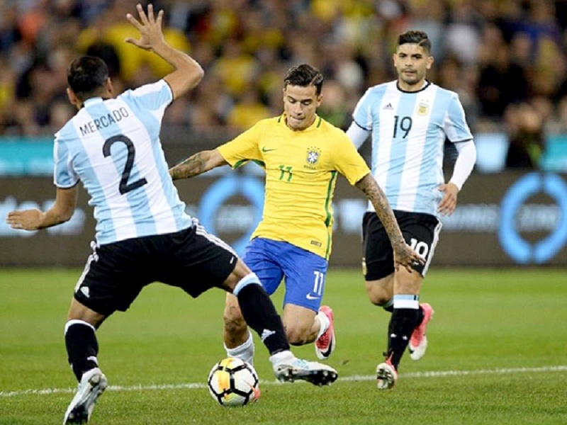 O jogo – logo nos primeiros minutos a Argentina já mostrou a que veio. Di Maria recebeu em profundidade nas costas de Fagner e carimbou a trave de Weverton. Pressionando a saída de bola da Seleção Brasileira, o time de Sampaoli não deixava os adversários jogarem. Coutinho, Gabriel Jesus e companhia só conseguiram se soltar depois dos 15 minutos.