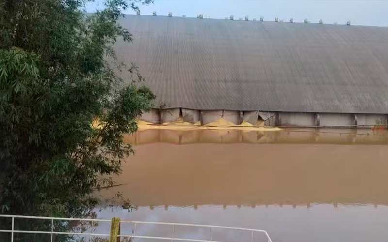 Um armazém de grãos da processadora de soja Bianchini, em Canoas, Rio Grande do Sul, teve sua estrutura comprometida pelas enchentes que atingiram o Estado nos últimos dias. O galpão, com capacidade para 400 mil toneladas, mantinha 100 mil toneladas da oleaginosa . A empresa ainda calcula o prejuízo, já que parte do conteúdo pode ser recuperado.