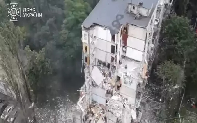 Grande parte de um edifício residencial de nove andares desabou na Ucrânia