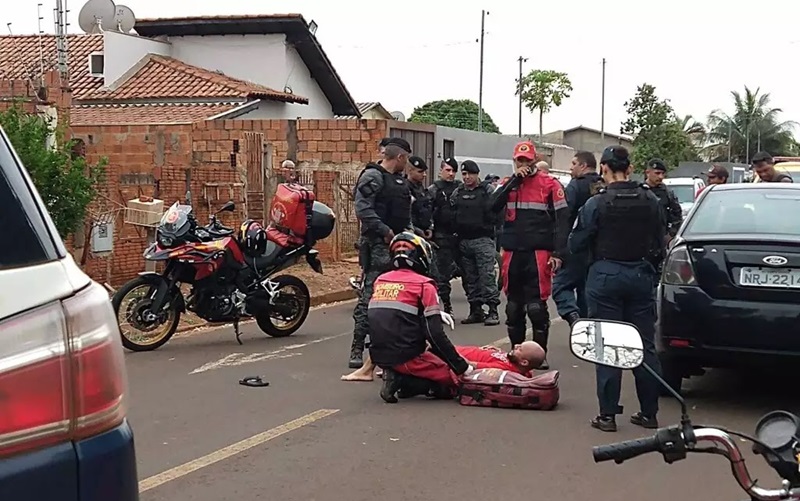 Vítima caída no chão após ter sido baleado por policial (Foto: Geniffer Valeriano)