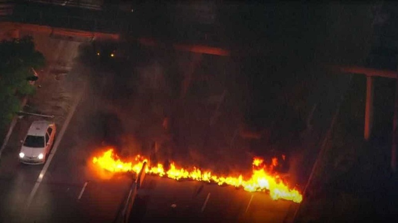 Ato bloqueia pista central da Radial Leste com barricada de fogo