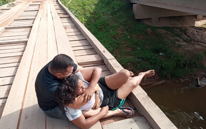 Policial teve que agir com rapidez, sem equipamento, para evitar que mulher pulasse de uma ponte em Novo Progresso. (foto: via WhatsApp Jornal Folha do Progresso)