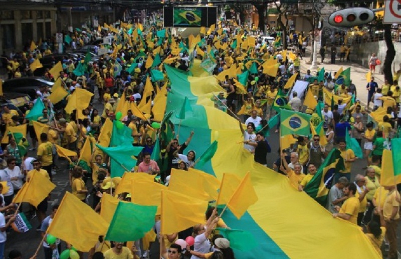 (Foto: Igor Mota/O Liberal) -Cerca de dez mil manifestantes saíram pelas ruas do centro de Belém em apoio ao candidato à Presidência da República, Jair Bolsonaro (PSL), na manhã deste domingo (30). A estimativa foi divulgada pela Polícia Militar, que não registrou ocorrências durante a passeata. Com roupas em verde e amarelo e bandeiras do Brasil, o grupo passou pelas avenidas Presidente da Vargas e Nazaré, Travessa Quintino Bocaiúva até chegar à avenida Franco de Souza, onde foi entoado o Hino Nacional.