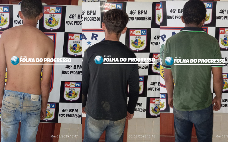 Foto: Reprodução | Em uma ação rápida e coordenada, a Polícia Militar prendeu três homens suspeitos de envolvimento em um homicídio ocorrido na manhã desta quarta-feira (6), em Novo Progresso. A prisão ocorreu por volta das 15h30 no Lago Municipal, durante patrulhamento de rotina.