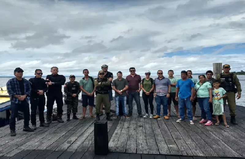Representantes dos órgãos de segurança, ambientais e do governo na comunidade Boim — Foto: Divulgação-Mais de 200 moradores de 15 comunidades participaram do evento.
