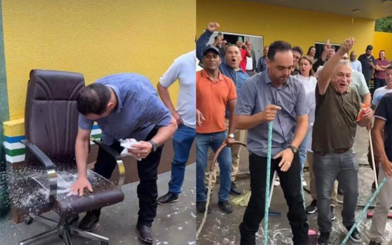 Foto: Reprodução | Segundo o prefeito, o objetivo da ação foi eliminar “energias negativas” associadas à gestão anterior e marcar um novo começo para o município