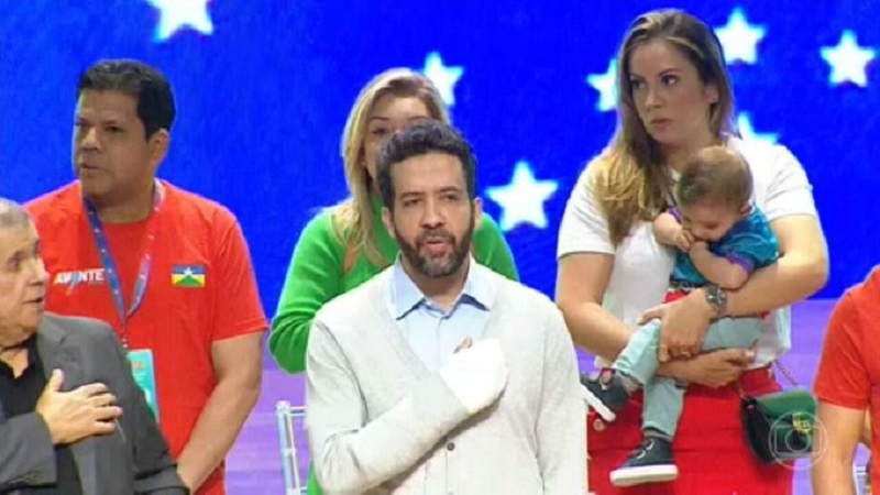 A convenção foi em Belo Horizonte, com o grande Teatro do Minascentro lotado. André Janones chegou com a mão direita engessada. No começo de julho, um objeto de decoração do gabinete dele, em Brasília, caiu sobre a mão, provocando uma fratura.